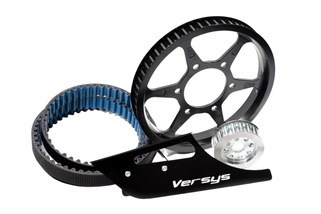 Our kit is a complete system, designed to ensure a precise and efficient conversion from chain to belt drive. Developed specifically for each motorcycle model, it integrates a set of perfectly sized and calibrated components to function as a single, highly reliable system.